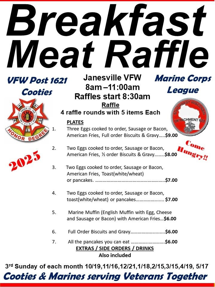 Marine Corps Breakfast (3rd Sunday each month; October thru May only)