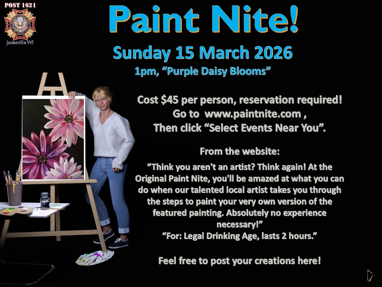 We now have an all-new Facebook Page, check it out here. (Or in Facebook, select groups, search for "VFW 1621 Official").